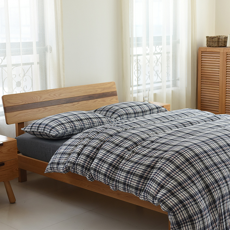 Total Cotton Double Layer Yarn Baby Grade Fabric Plaid Stripe Minimalist Bed-in-bed Ogasaward-Bed bedding Four pieces of cover