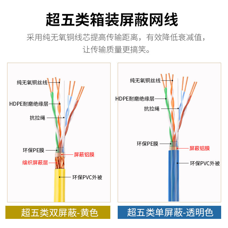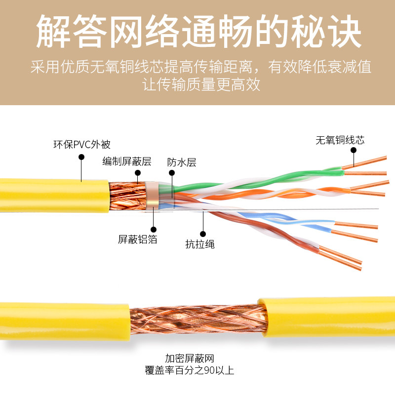 Indoor and outdoor super five double screen shield pure copper network cable Household six gigabit anti-interference POE monitoring broadband finished product