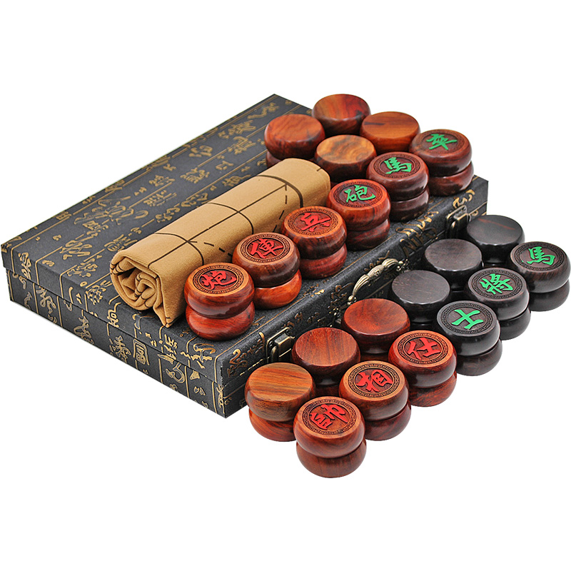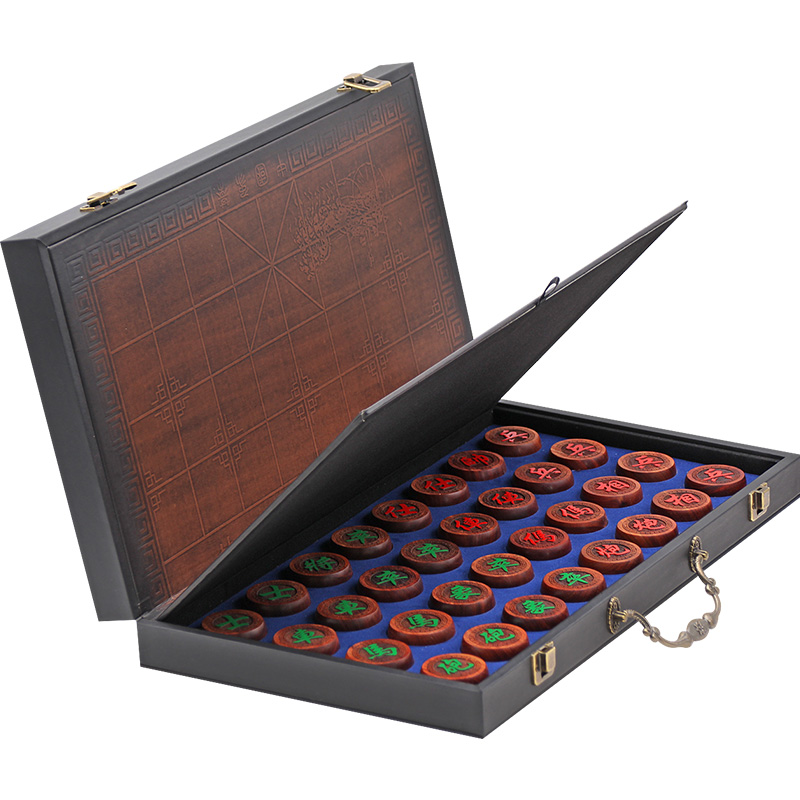 Chinese Chess Suit Large Solid Wood Purple Light Sandalwood Chess Pieces Adult Beginner Portable Leather Chessboard