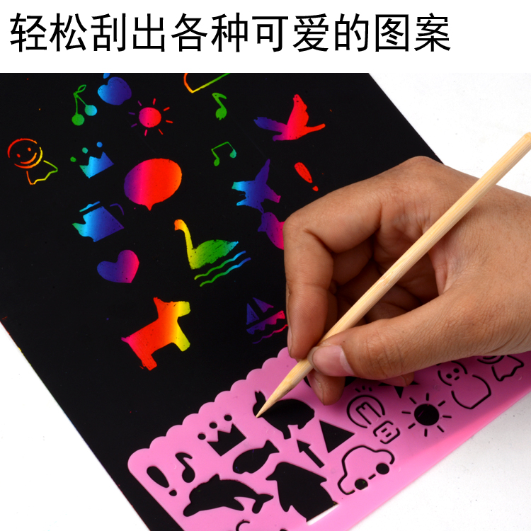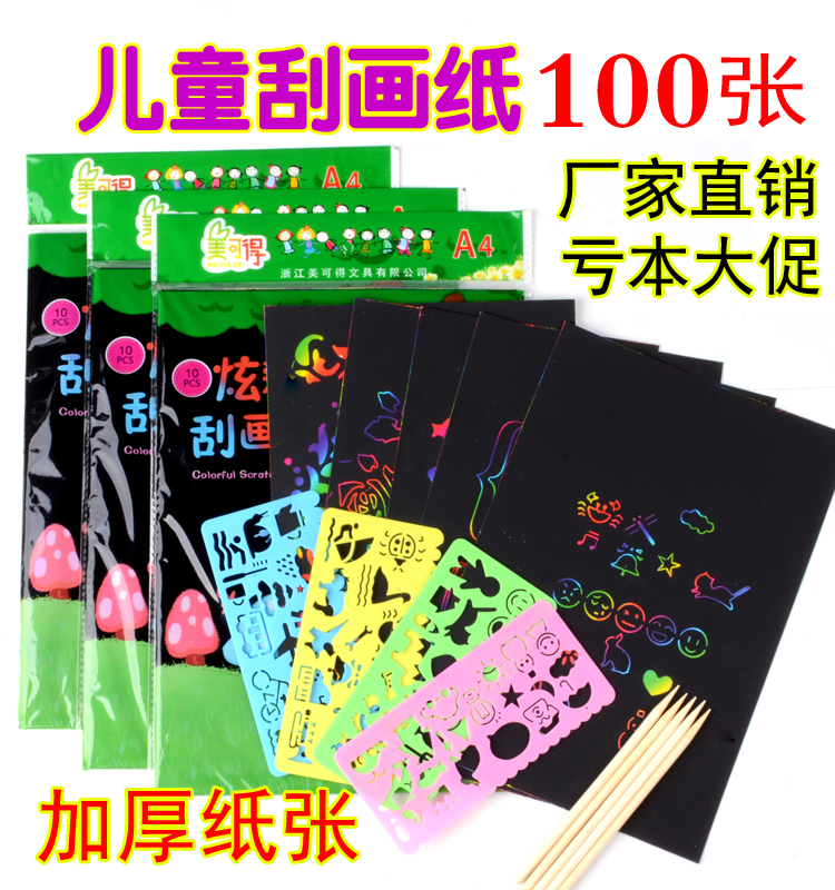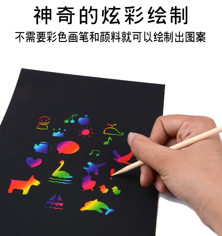Children's diy handmade colorful scratch painting paper A4 scratch painting 8 open thickened scratch painting this environmental protection puzzle non-toxic scratch painting