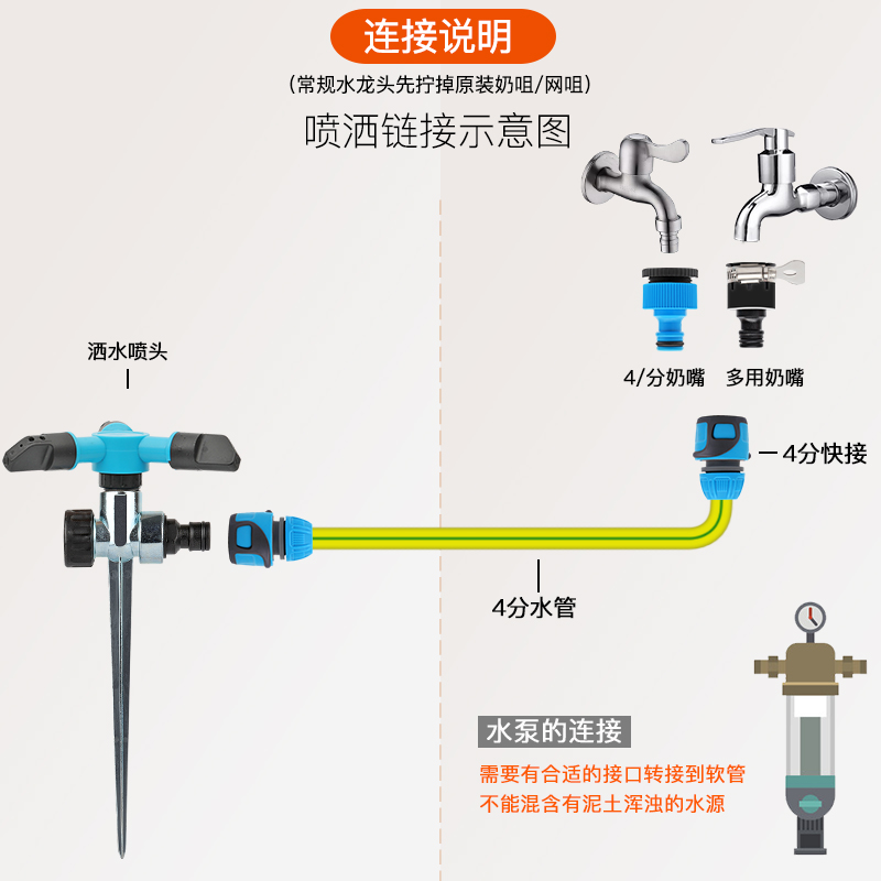 Vegetable garden watering artifact 360 degree automatic rotating nozzle Agricultural vegetable garden farmland watering ground spraying lawn sprinkler