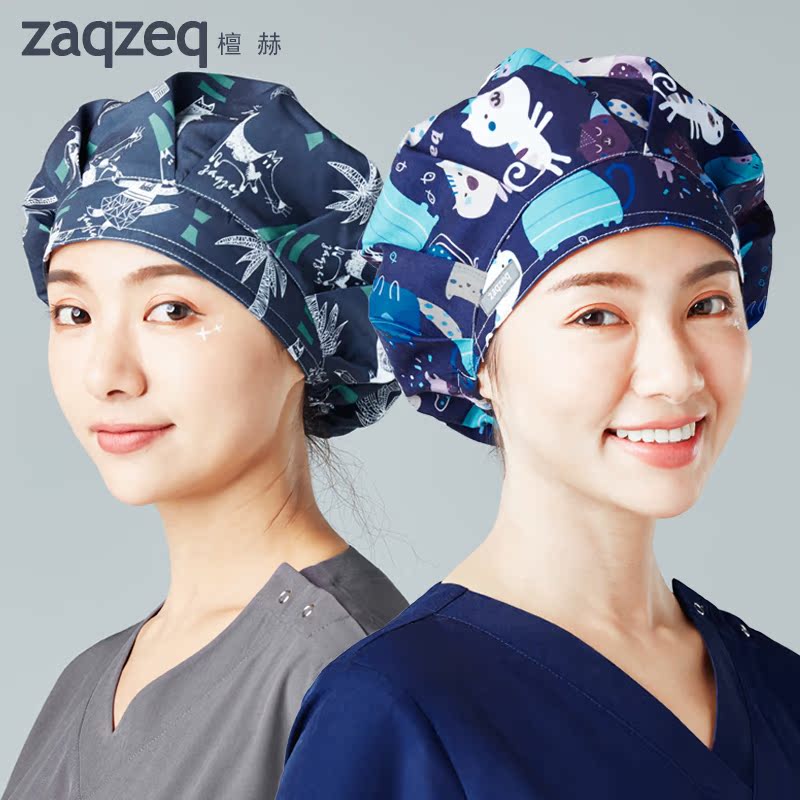 Tan He surgical cap Printed Puff cap Dental pet hospital nurse doctor long hair work cap unisex