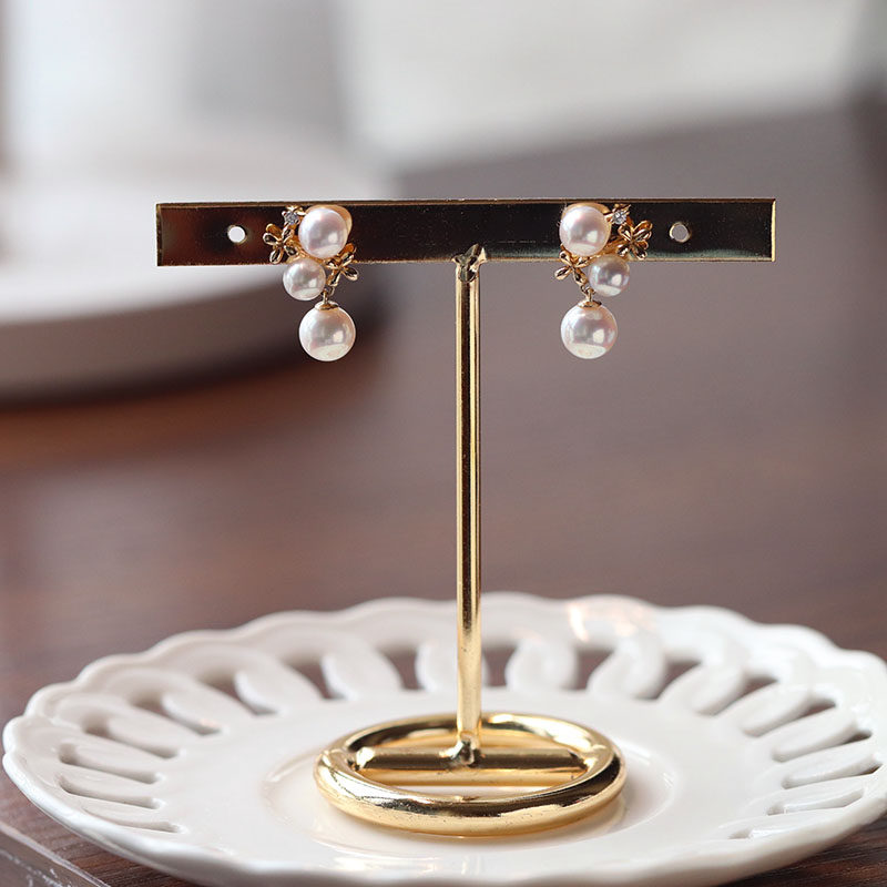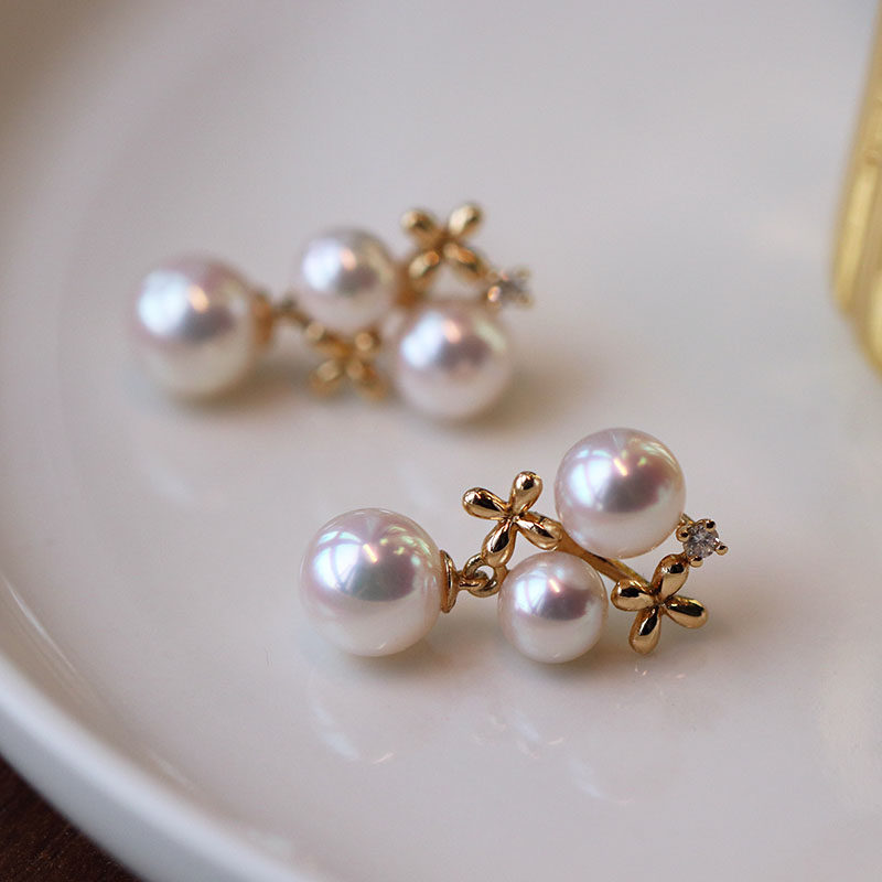 Colorful multi-bead thick gold version of Japan imported Akoya seawater pearl color Rin beads diamond drop earrings earrings earrings