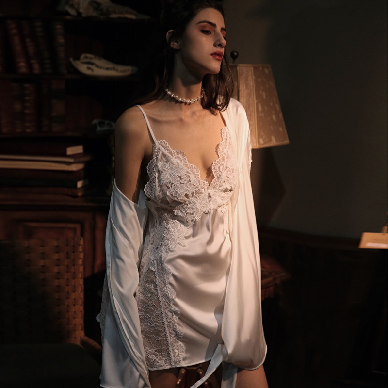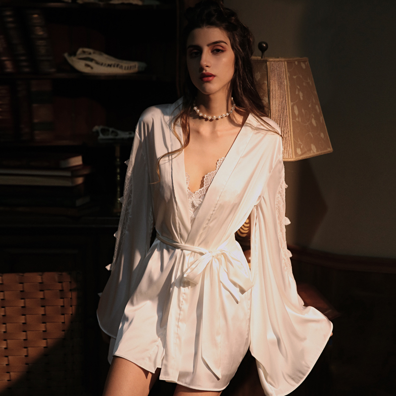 Mrs. Lemon sexy morning gown sleeping robe woman 2022 New spring and autumn pyjamas Home Water Soluble Flowers Seduction Bathrobe