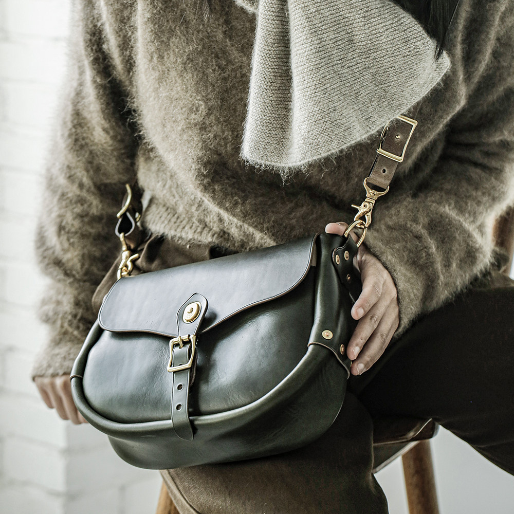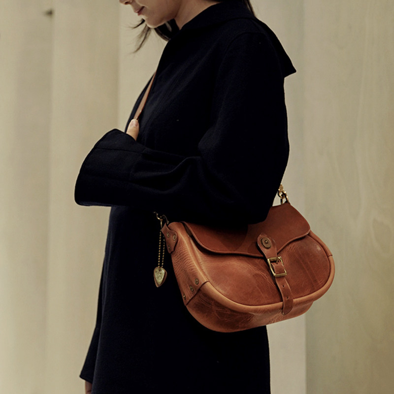 HK workshop Holvin head layer cowhide handmade retro classic small saddle bag Messenger hand carry shoulder bag