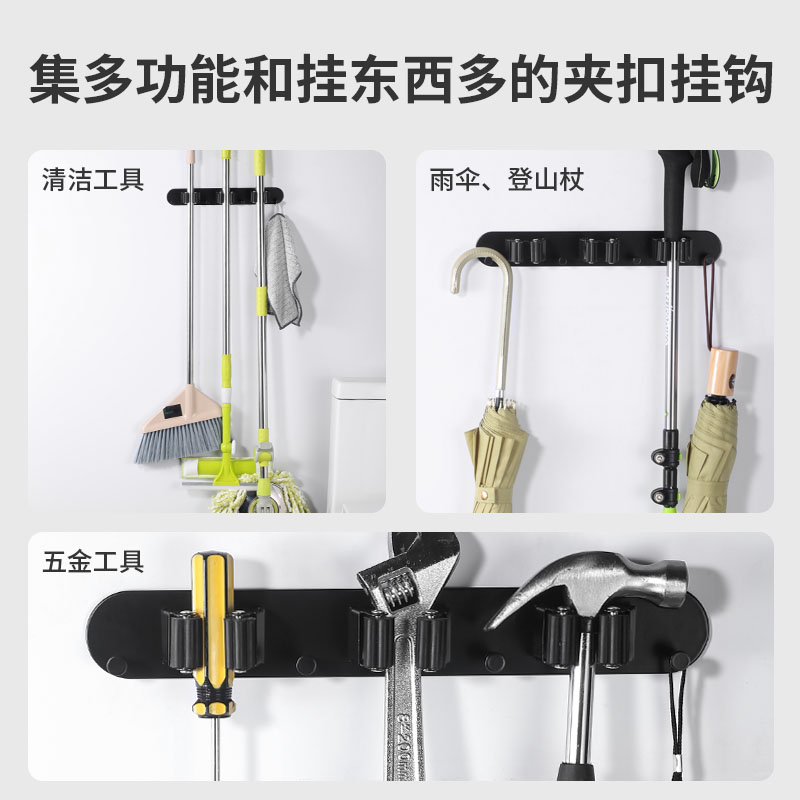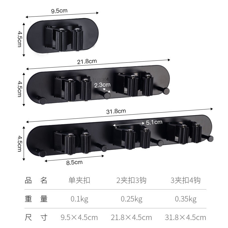 Mop clip wall-mounted Black stainless steel bathroom broom mop cloth Strong non-trace sticker hook free punching mop rack
