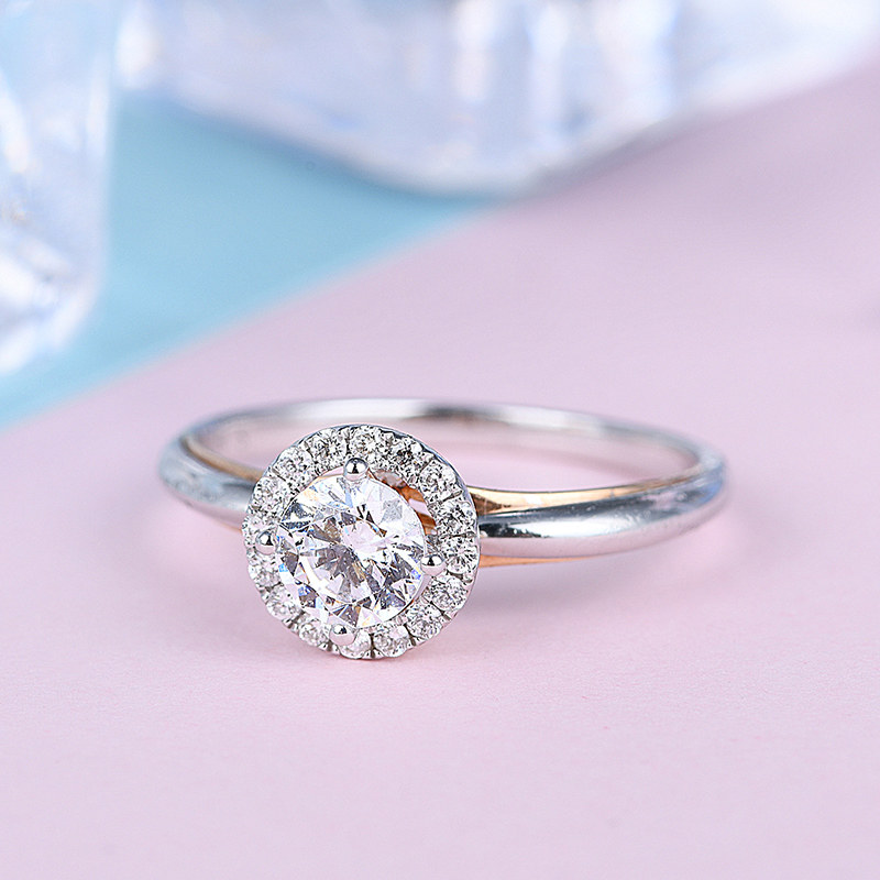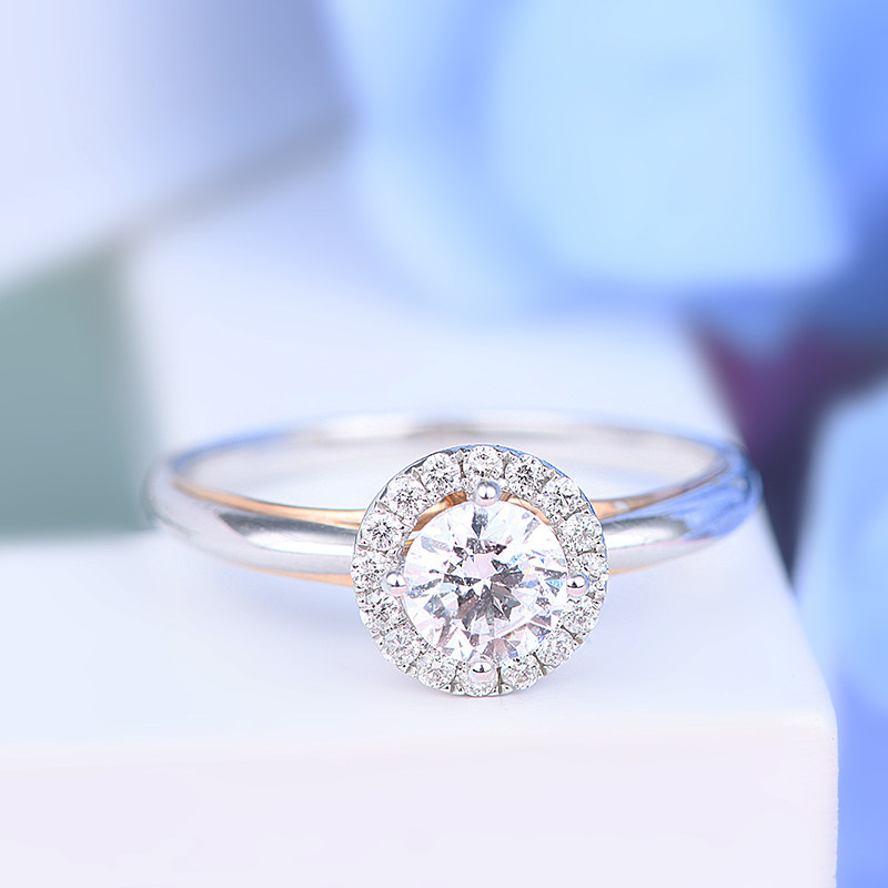 18K Platinum Luxury Group Inlaid Round Classic Four Paws Diamond Ring Female Real Drill Custom Platinum Courting Wedding Ring GIA Nude Drill