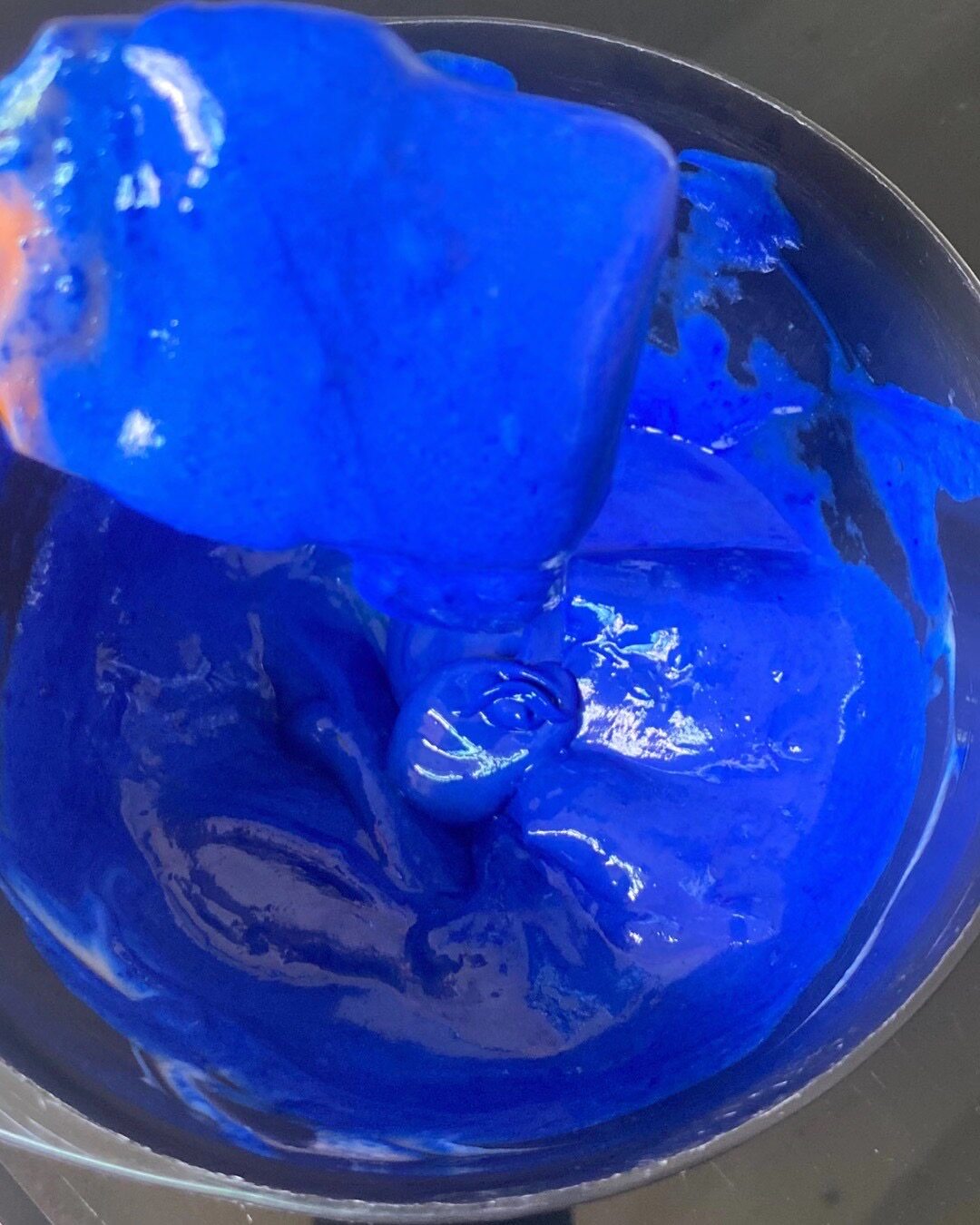 A blue and a tumulo with a colorful hair cream.