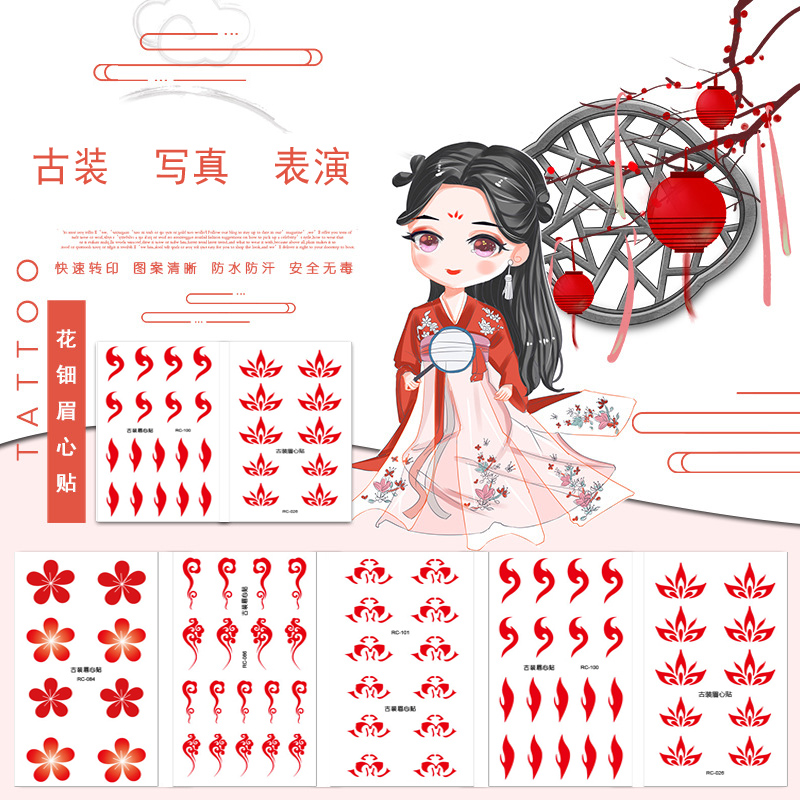 National Wind Flower Flowers Platinum Brow with Handmaid's Ancient Dress Girl Flowers Print Beauty Bride's Waterproof Female Forehead Stickler Watermark Ancient Wind Sticker Safety Cute 61 Children's Day Performance Decorative Patterns