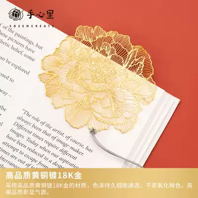 Peony flower in the palm of your hand Metal plated 18K gold bookmark ancient style graduation gift Classical Chinese style creative cultural creation