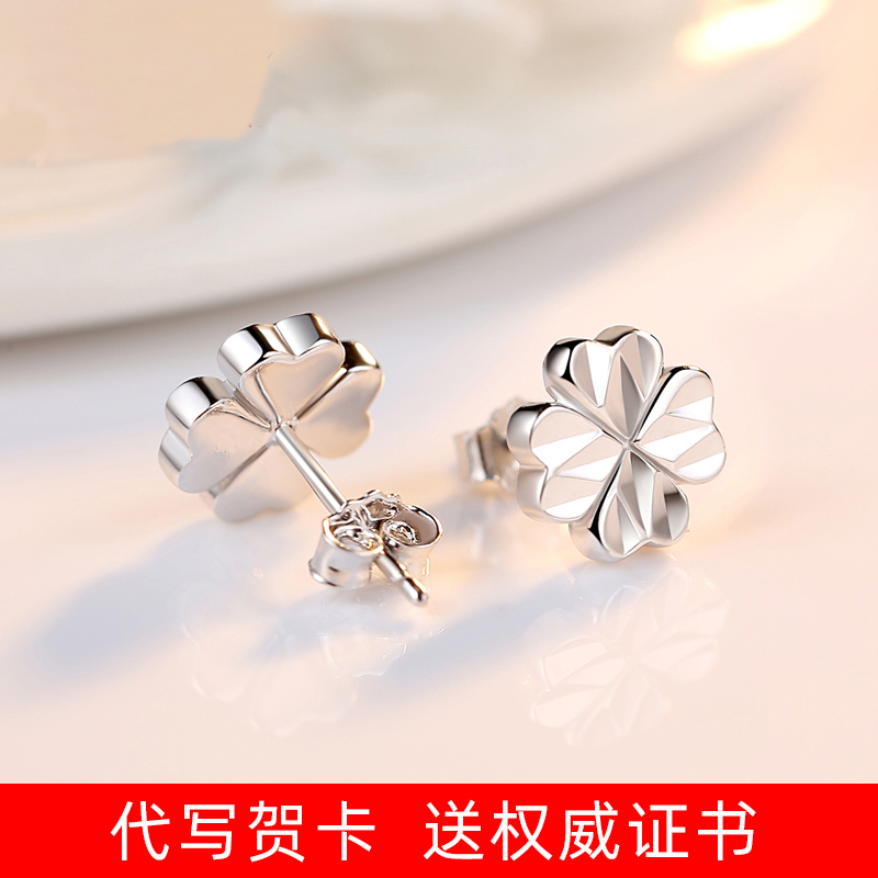 PT950 Platinum Earrings 18K Platinum Earrings Diamond Jewelry Earrings Four-leaf Grass Earrings Female Korean Birthday Gift