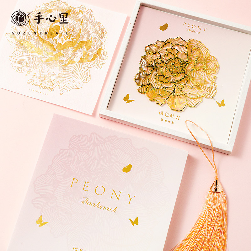 Peony flowers in the palm of the metal exquisite bookmark Classical Chinese style custom high-end creative cultural and creative graduation gift