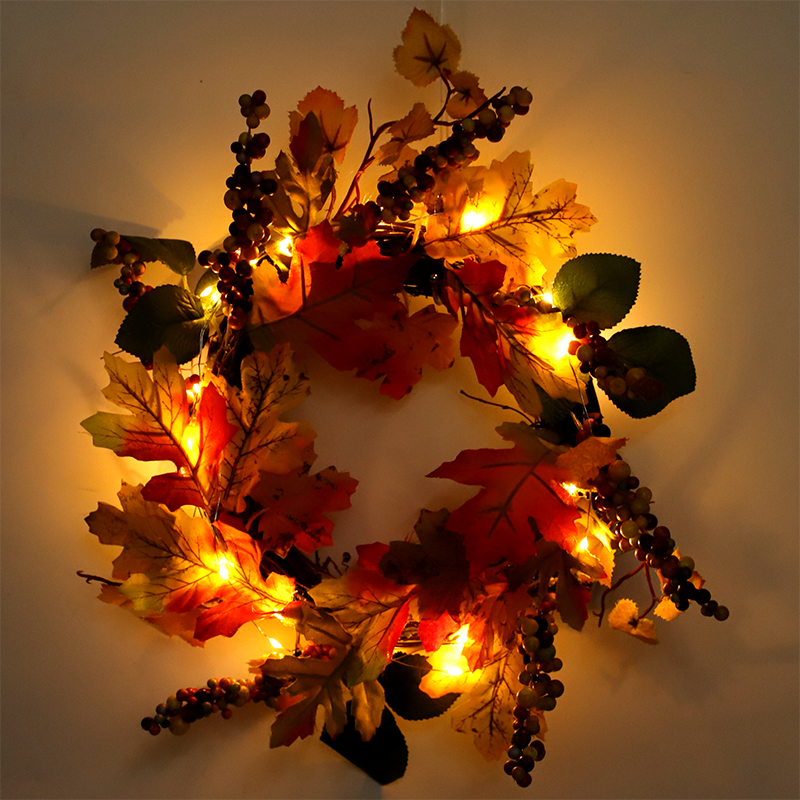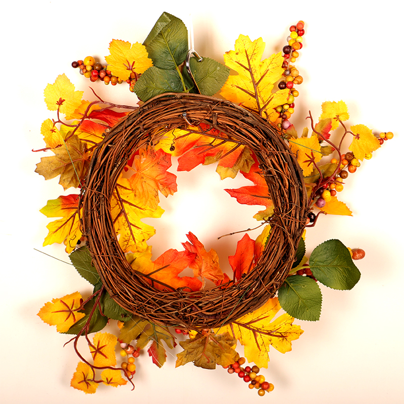 Creative Thanksgiving Home Room Placement Autumn Emulation Flowers Maple Leafs Red Fruits Flowers Rings Hotel Doors And Windows Hanging Wall Ornaments-Taobao