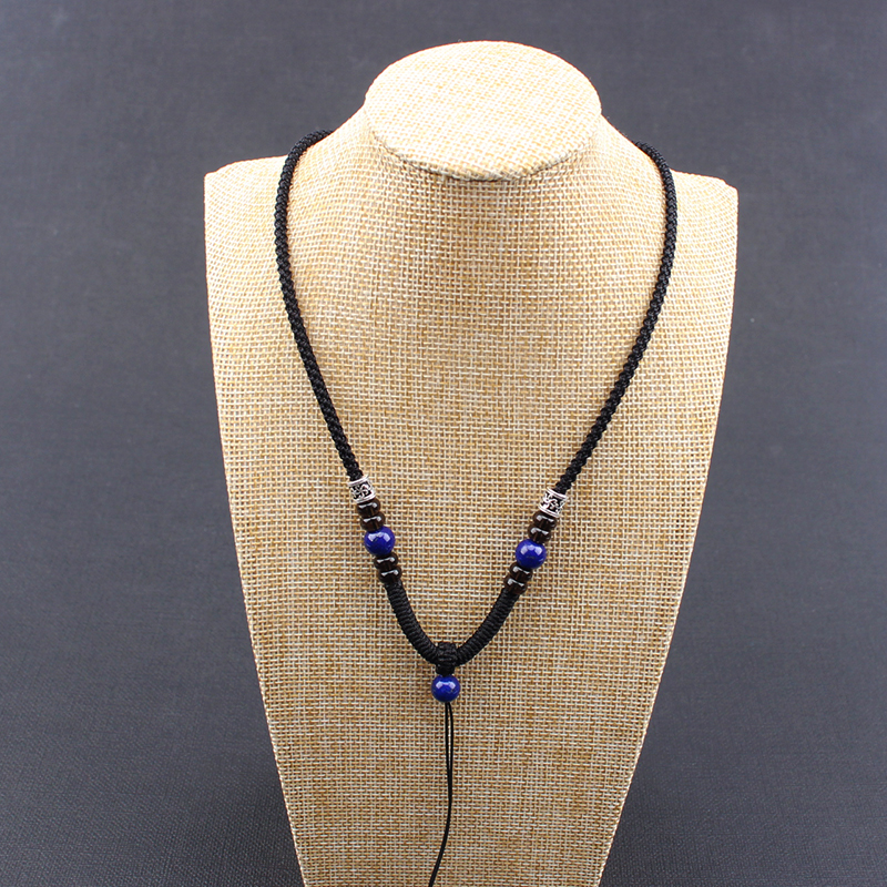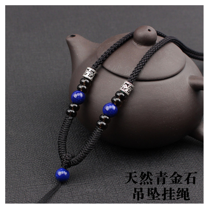 Pure hand-woven diamond knot natural 6A Afghan lapis lazuli sterling silver necklace pendant lanyard rope
