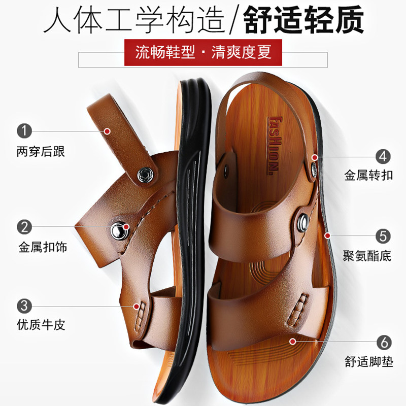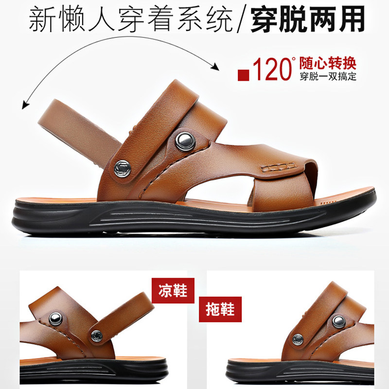 Leather sandals men's summer 2021 new non-slip soft-soled leather sandals men casual outside wearing beach shoes tide