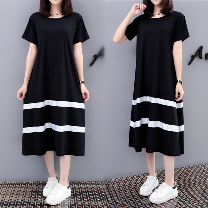 Summer dress new plus fat plus size maternity dress loose modal dress fat MM over the knee 200 catties long skirt