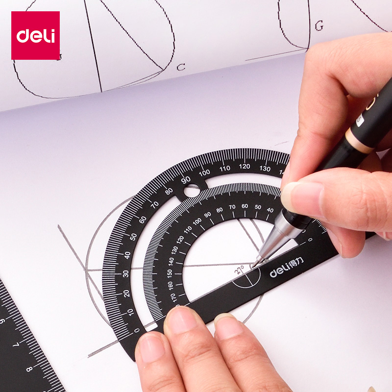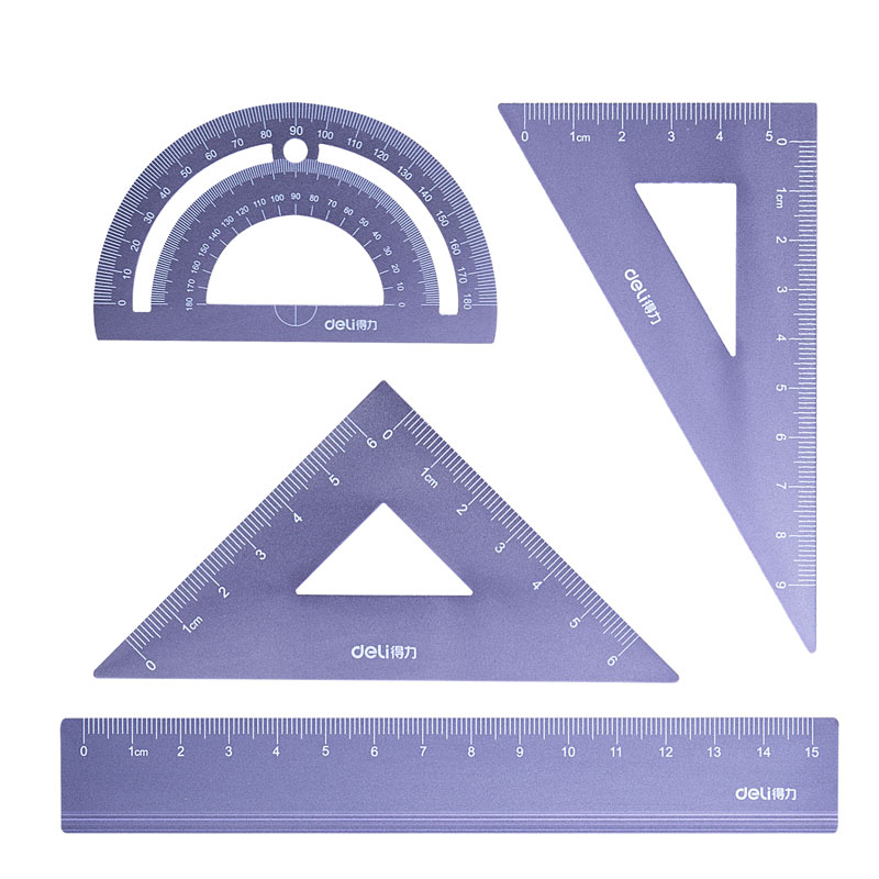 Deli metal set ruler drawing four-piece ruler for primary and secondary school students with triangle plate protractor exam ruler set