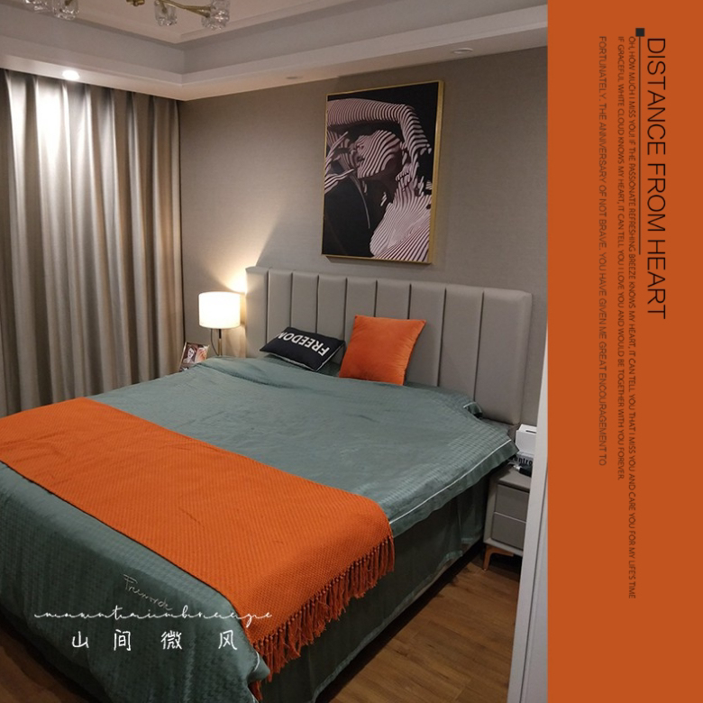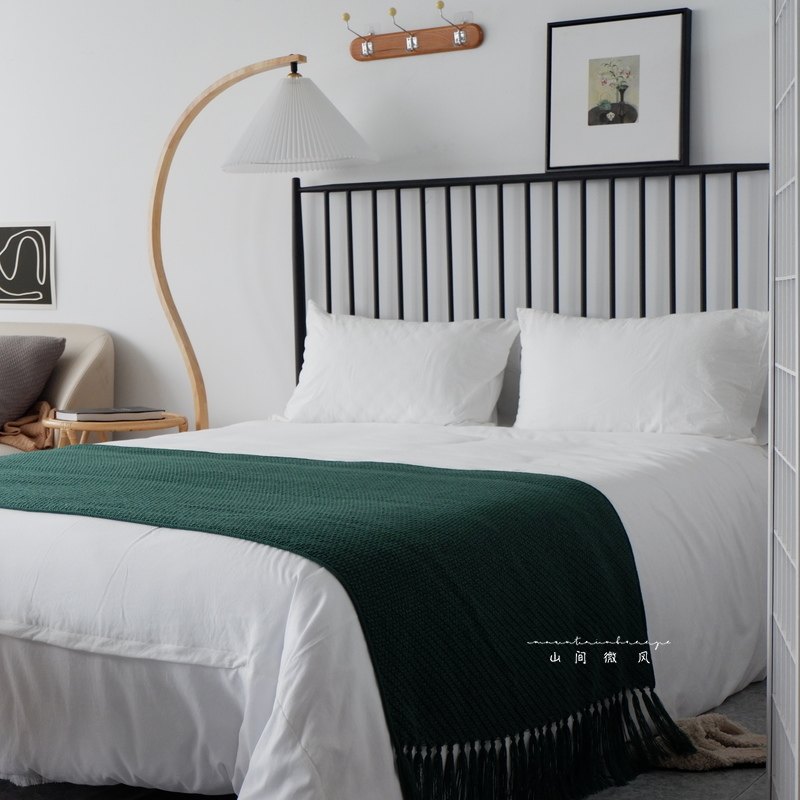 Orange light luxury tassel bed with towel and blanket European-style American sofa with blanket Soft-covered blanket Bed towel yellow blue gray