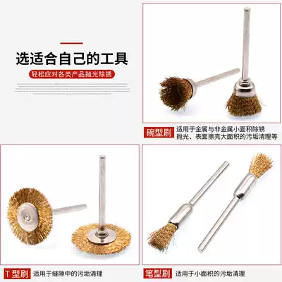 Copper wire small T brush (25 * 3MM) copper wire small Bowl type brush (15 * 3MM) copper wire brush (8 * 3MM) steel wire small T brush (25 * 3MM) steel wire small bowl brush