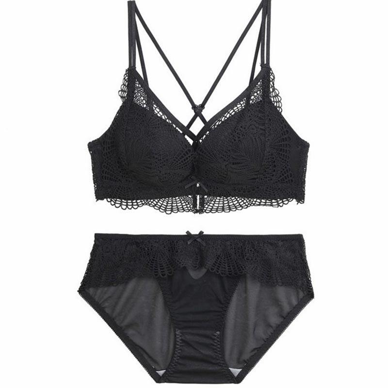Lace beauty back sexy strapless rimless underwear set Women's thin small chest gathered on the upper bracket adjustment underwear cover