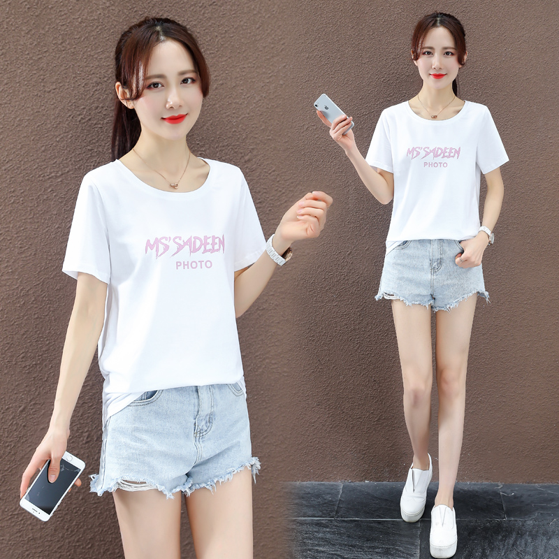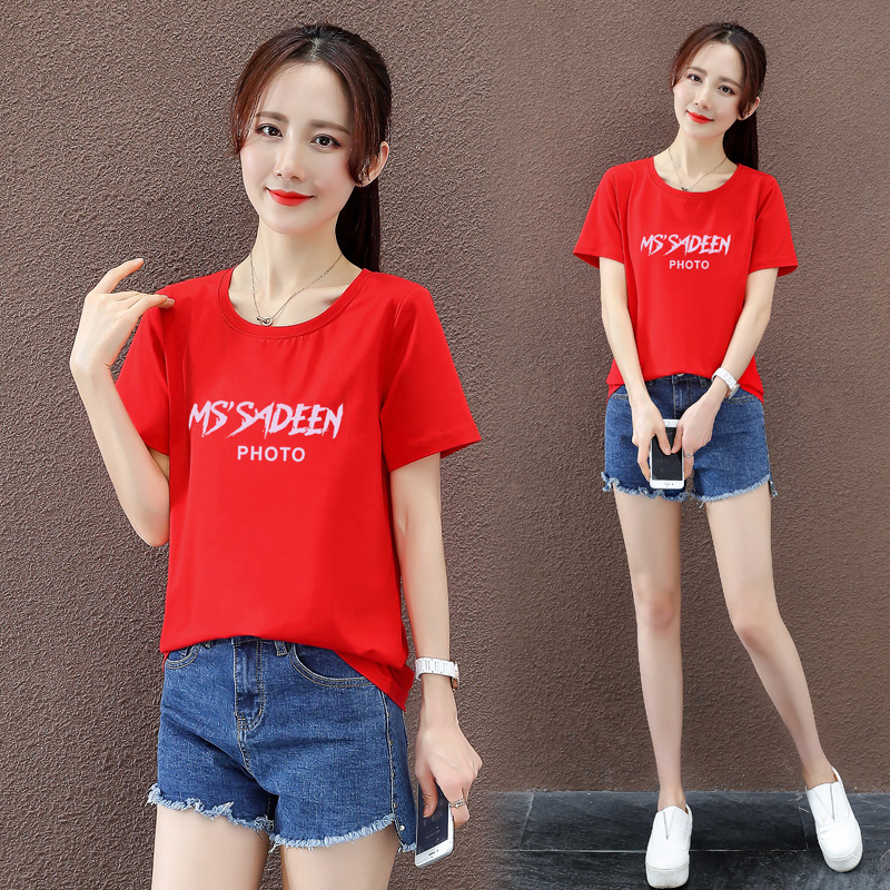Short-sleeved t-shirt women's summer 2022 new trendy cotton loose Korean version ins white net red T-shirt printing student top