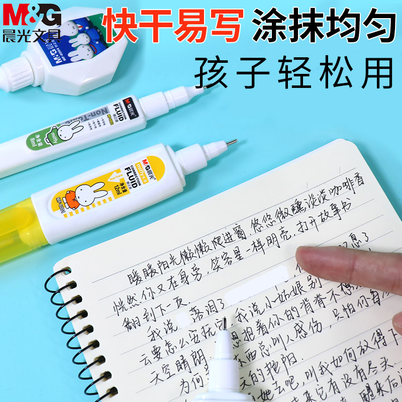Morning light non-toxic quick-drying correction liquid For students with incognito correction liquid for primary school students special large capacity white correction liquid Dual-use correction tape word change liquid word change artifact