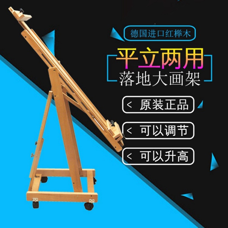 Red Beech Wood Flat Double Purpose Large Painting Shelf Oil Painting Country Painting Liftable Solid Wood Large Wooden Oil Painting Shelf