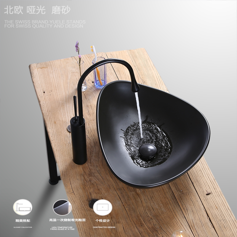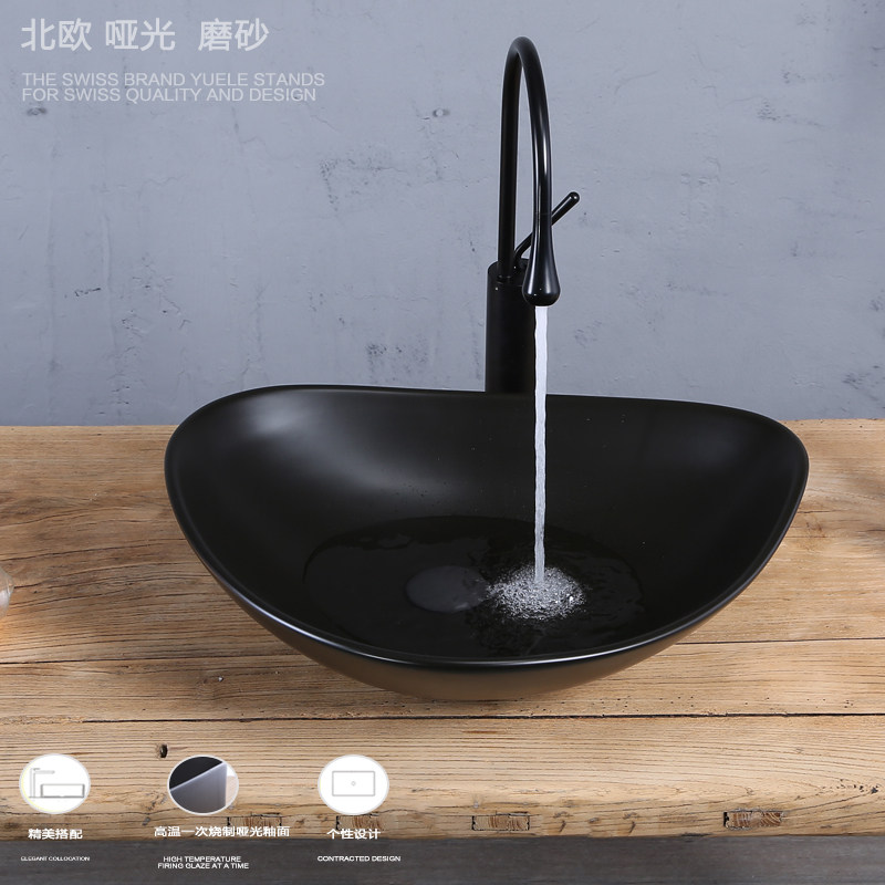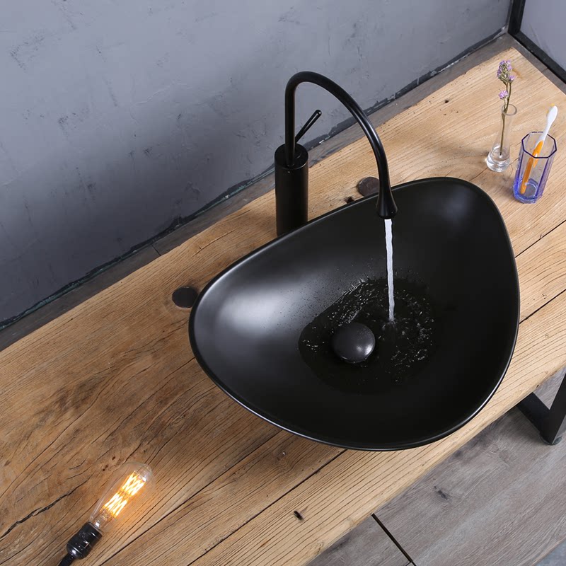 Matte Black Countertop Basin Triangular Ceramic Washbasin Powder Room Basin Household Basin Nordic Simple