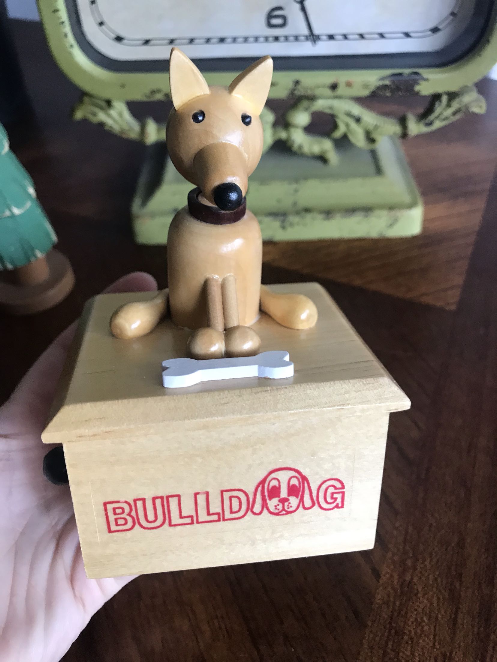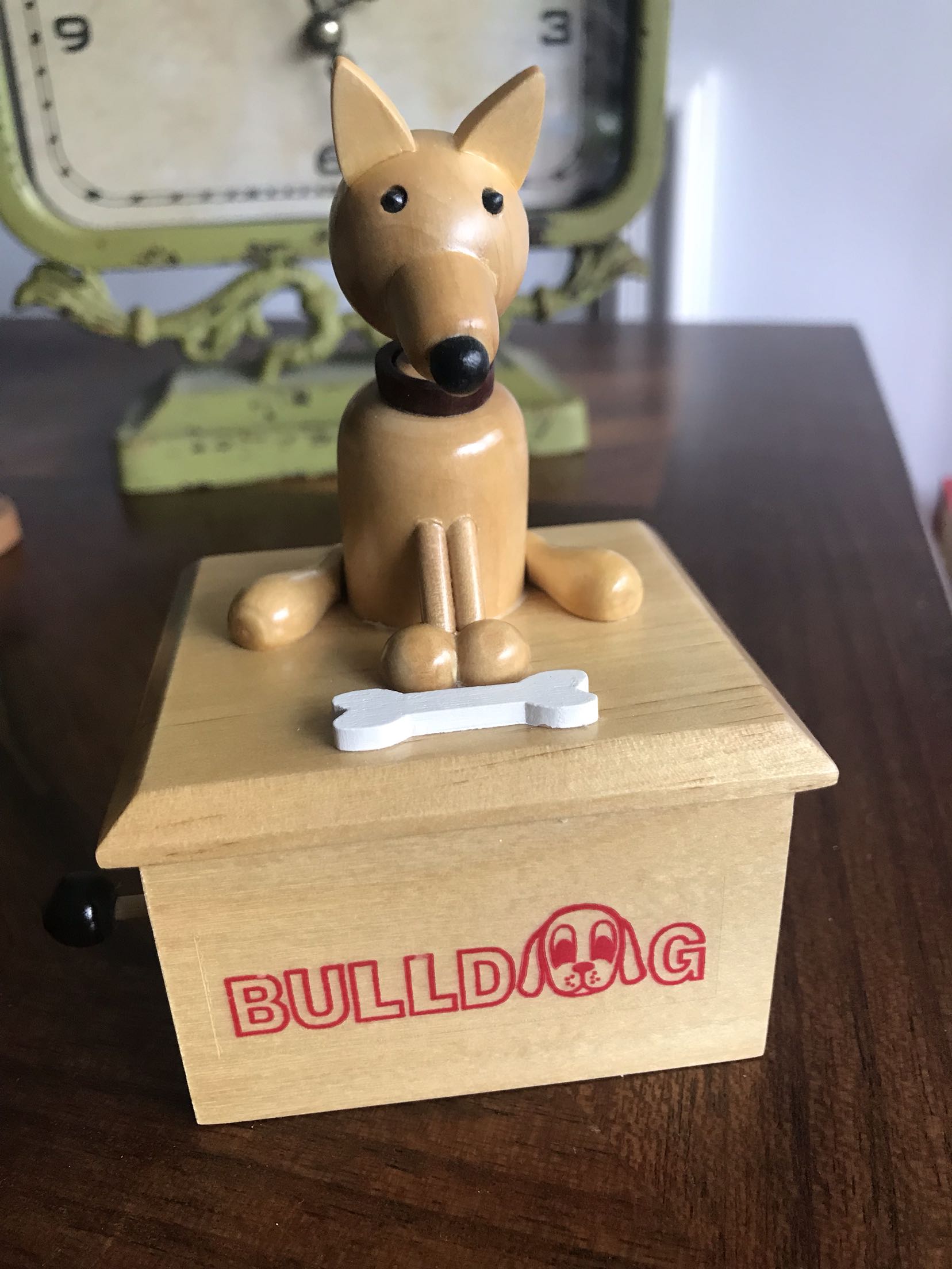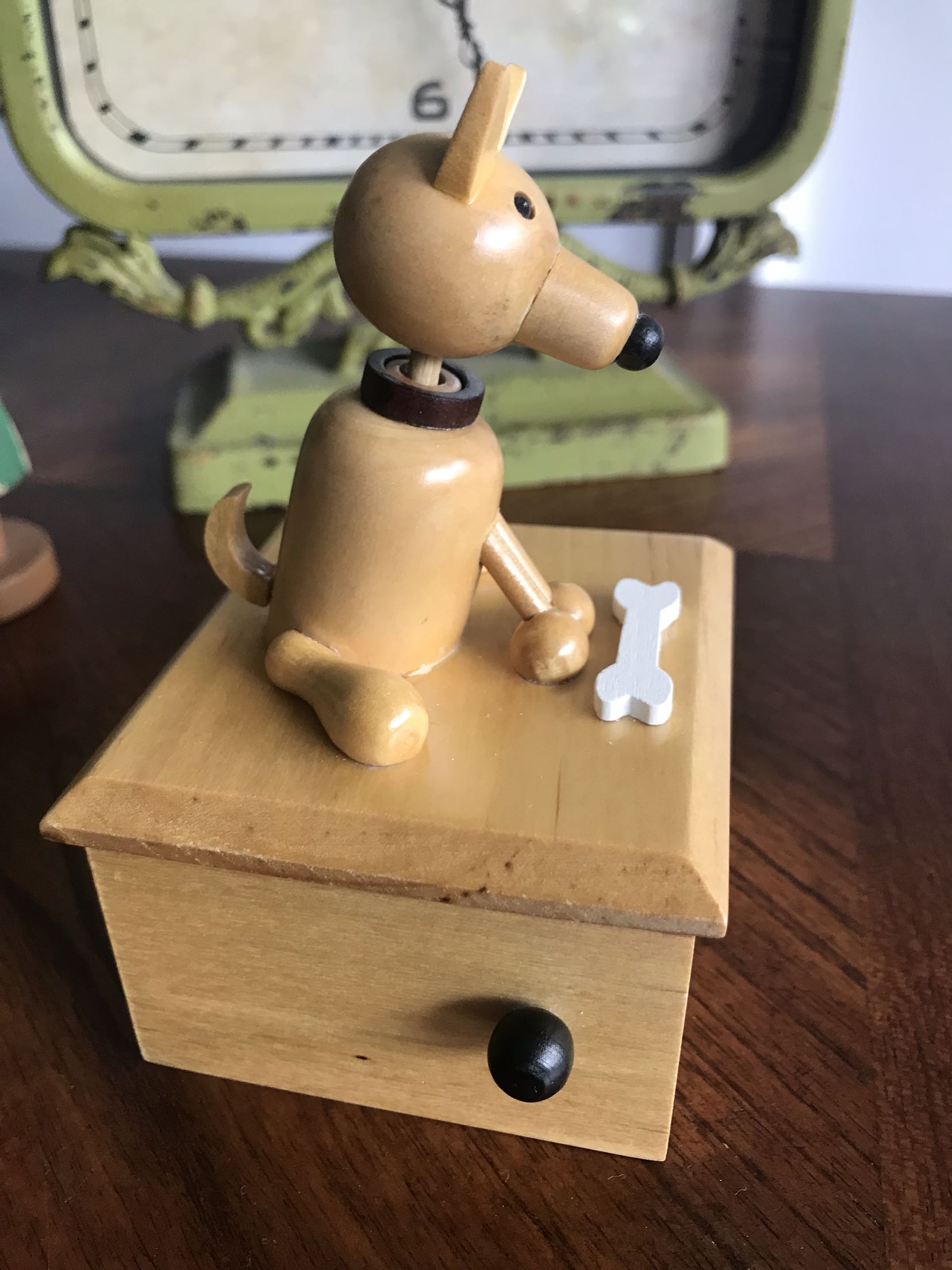 Japanese antique toy store birthday gift handmade wooden cute puppy winding music box