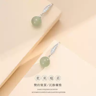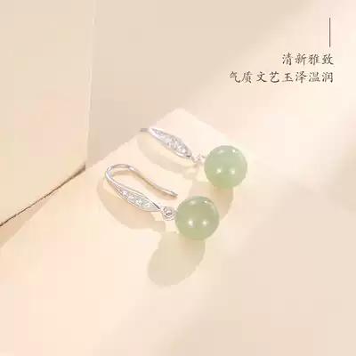 s925 sterling silver Japanese and Korean ear needles female natural Hetian jade earrings vintage lover gift