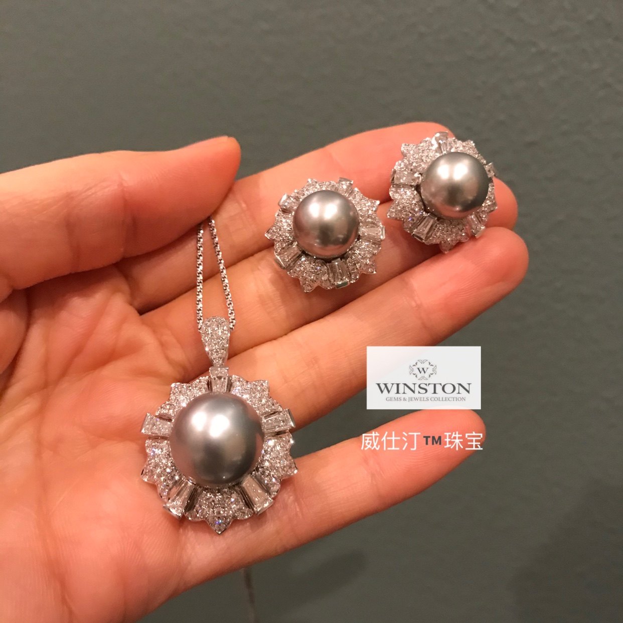 Favorite gray - gray - gray - gray gray - gray pearl diamond 18k platinum ear needle