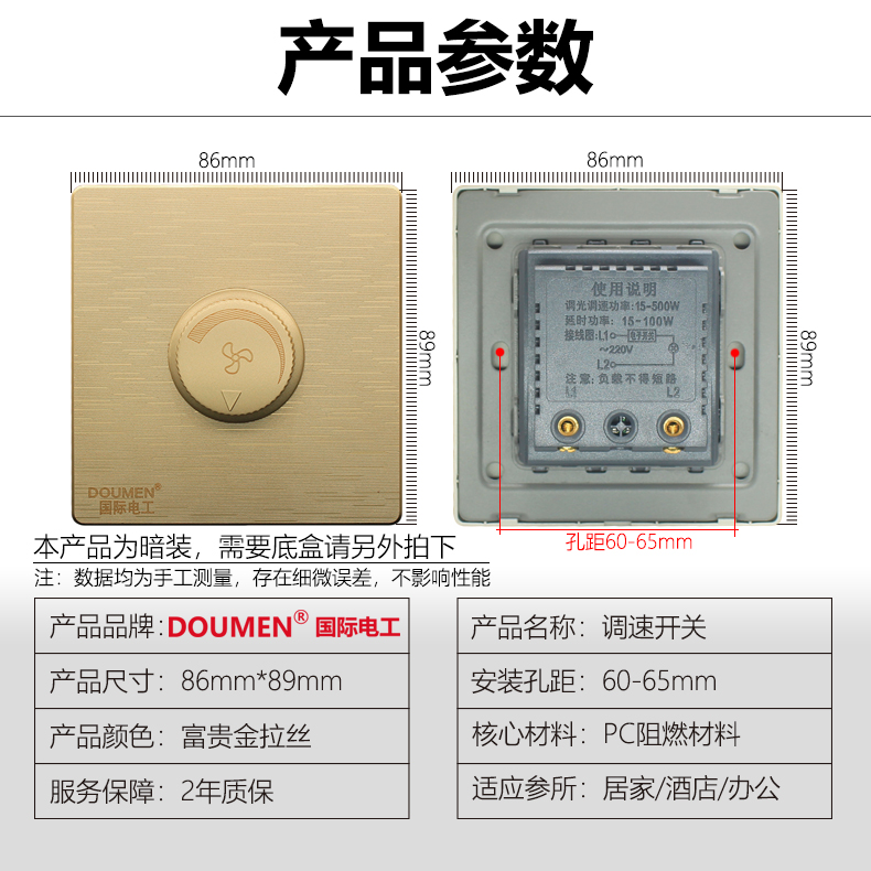 International Electrics Champagne Golden Wire Drawing Switch Socket Panel package 86 Type of concealed home One throttle switch