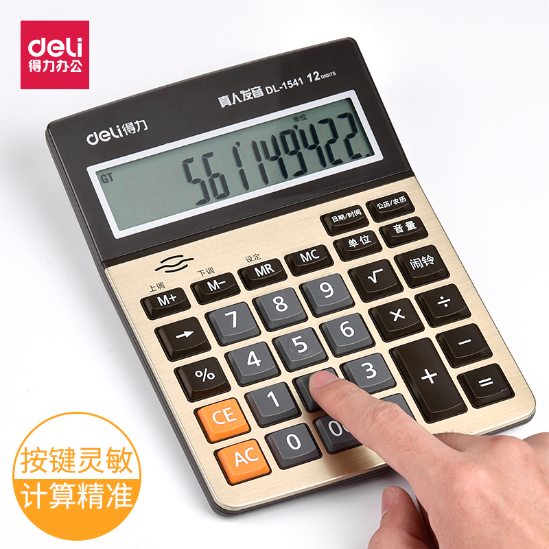 Deli 1654 large screen large button calculator Solar voice Financial accounting special computer Real pronunciation Large multi-function office business calculator Student exam university