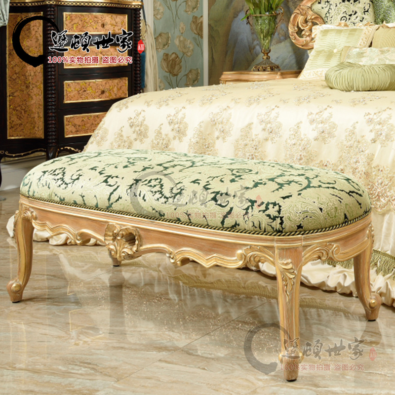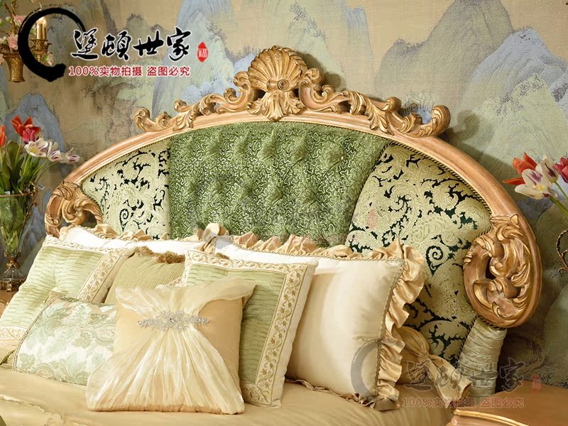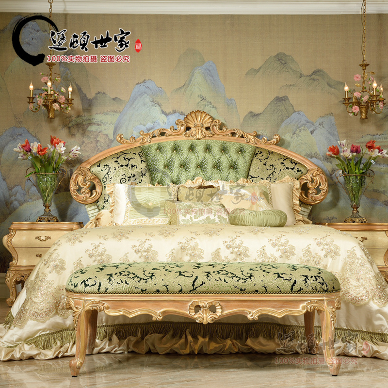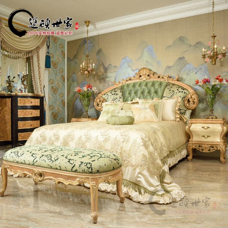 Eurostyle Italian classical style solid wood hollowed-out sculpted hand sticked gold leaf handmade furniture bedroom with two draws of bed and head cabinet