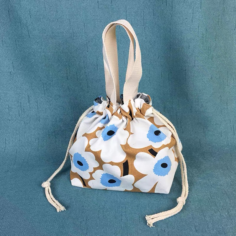 Net red flowers Japanese-style lunch box bag cute bento bag canvas drawstring hand-held bento bag with rice bag