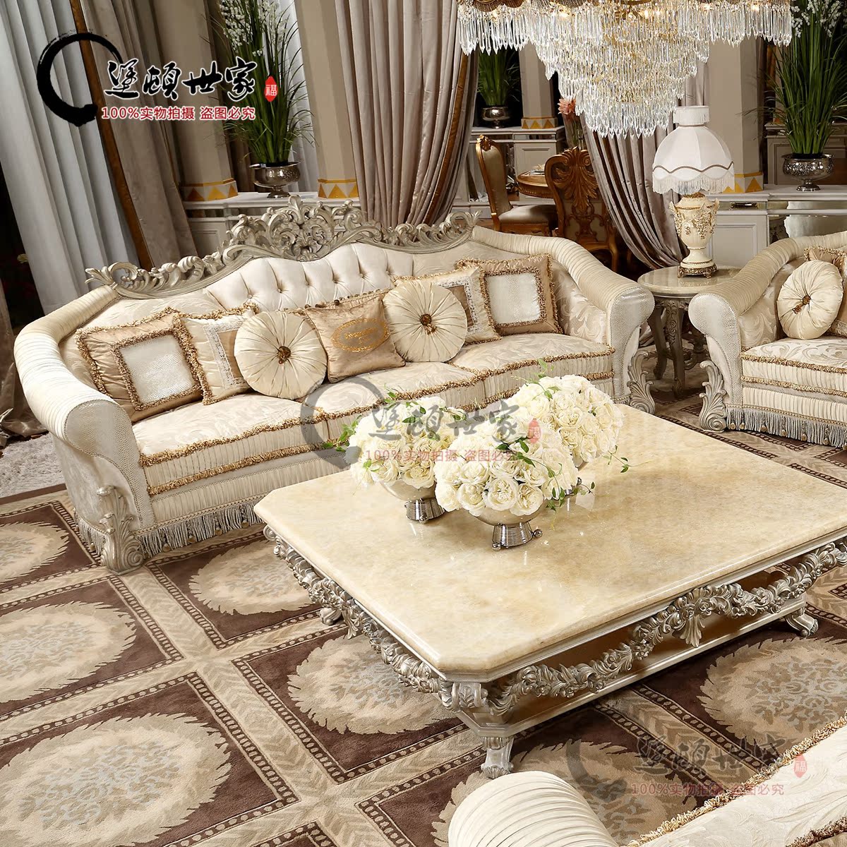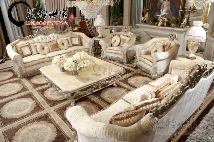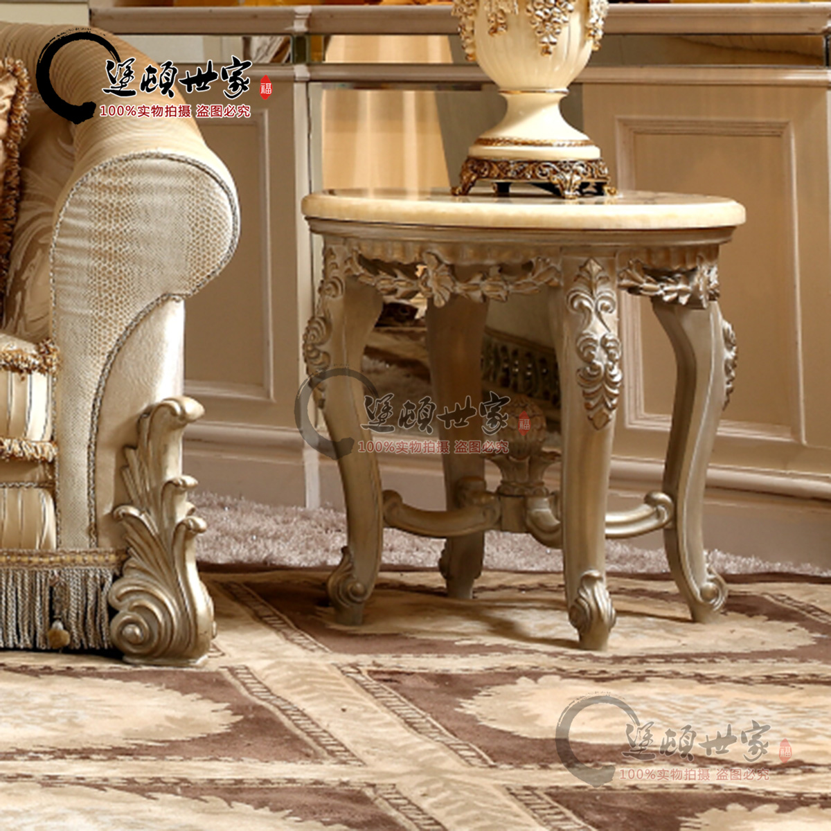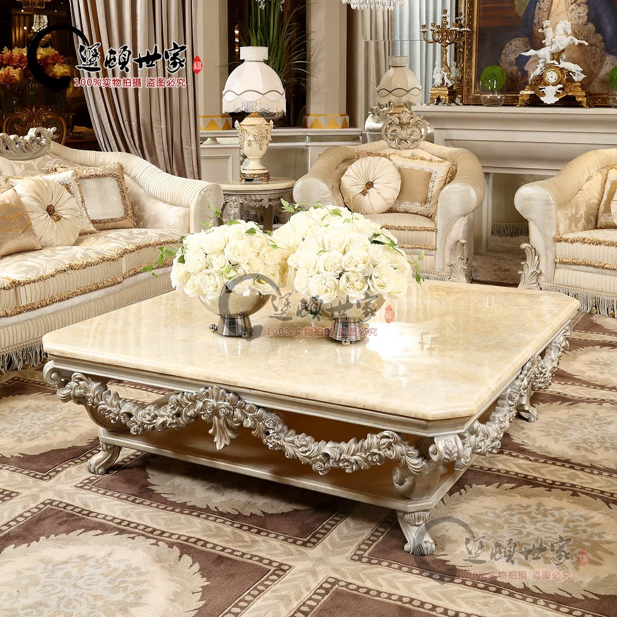 French classical European Italian palace living room natural marble square coffee table solid wood carving furniture customization