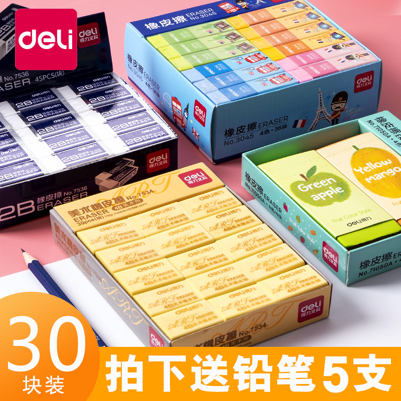Deli eraser for students without leaving a trace Eraser Creative cartoon cute primary school stationery Children's school supplies 4B small eraser 2B wipe clean large eraser mixed with the whole box of soft eraser