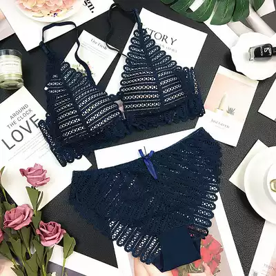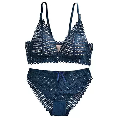 Summer sexy thin underwear women front buckle beauty back triangle cup lace without steel ring small bra gathering bra set