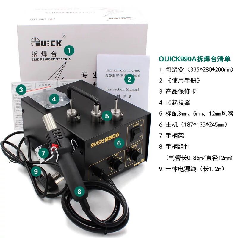 Quick 990A hot air gun desoldering table large power air pump digital display constant temperature temperature control lead-free desoldering table maintenance