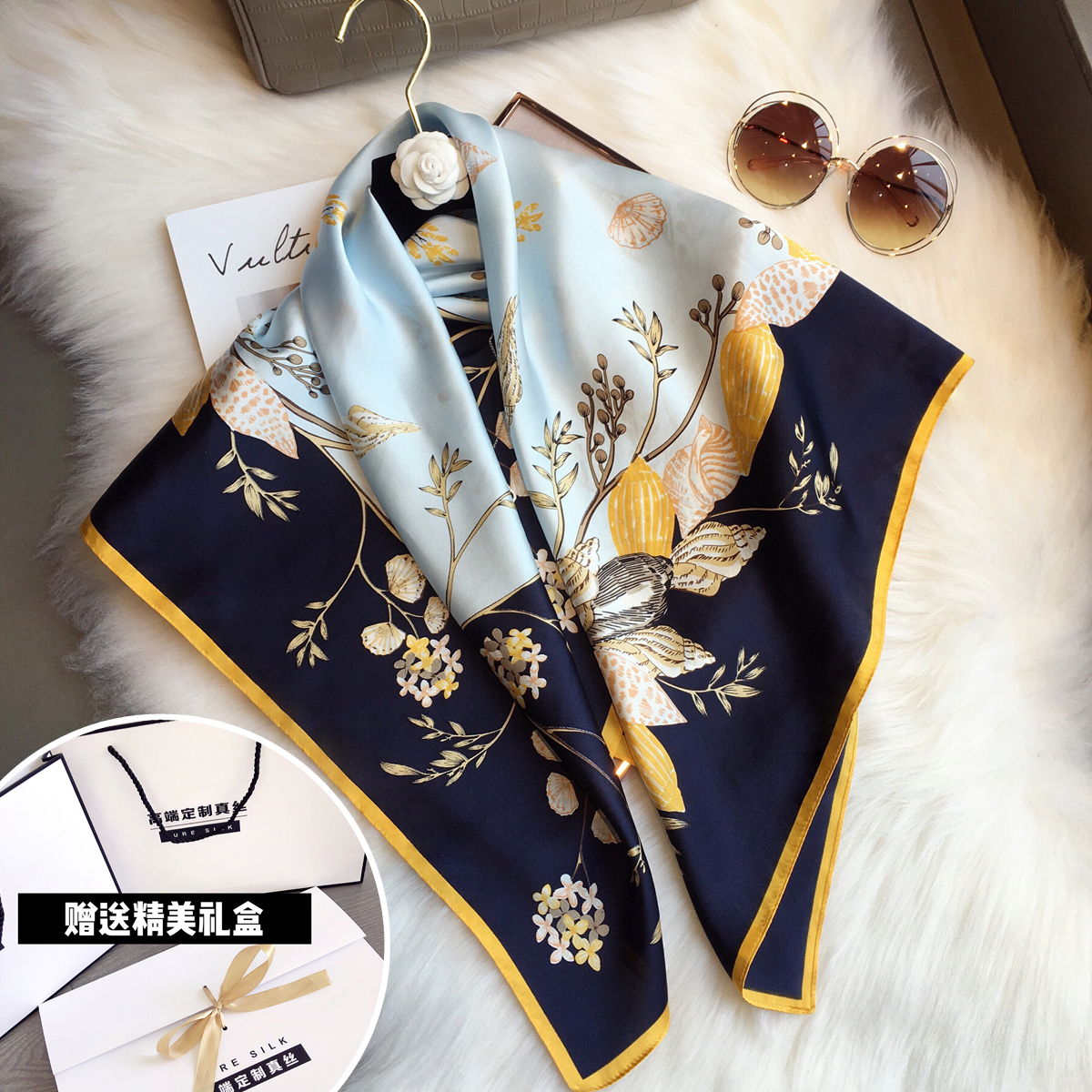 Real silk scarlet female shell flowers 100 hitch a thin piece of mulberry silk real silk scarf Hangzhou silk scarlet cape spring autumn