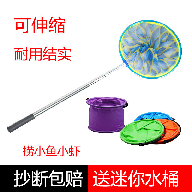 Stainless steel fishing net telescopic color children's fishing net Lobster tadpole net pocket small fish fishing net Insect net