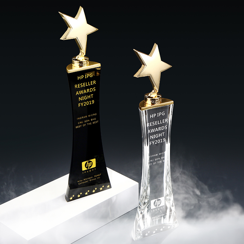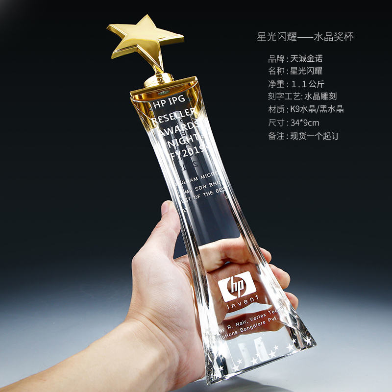 Starlight Blazing Trophy Crystal Metal Pentagram Customized to make creative lettering new cylindrical competition awards