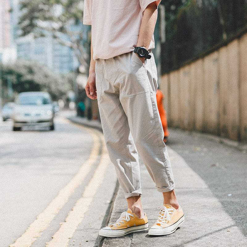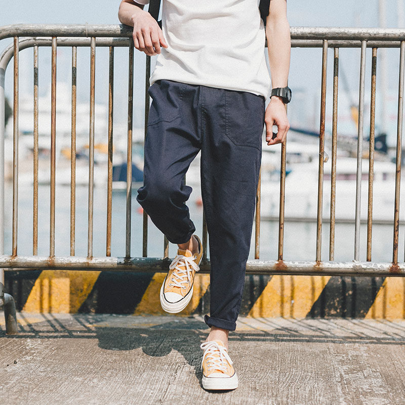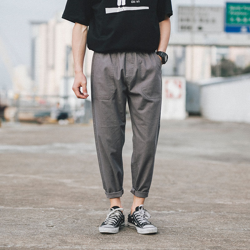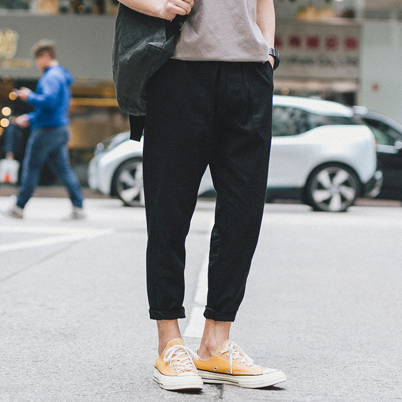 "Boy Next Door" Summer Japanese Trendy Men's Cotton Linen Nine-point Pants Korean Version Thin Section Loose Casual Harem Pants