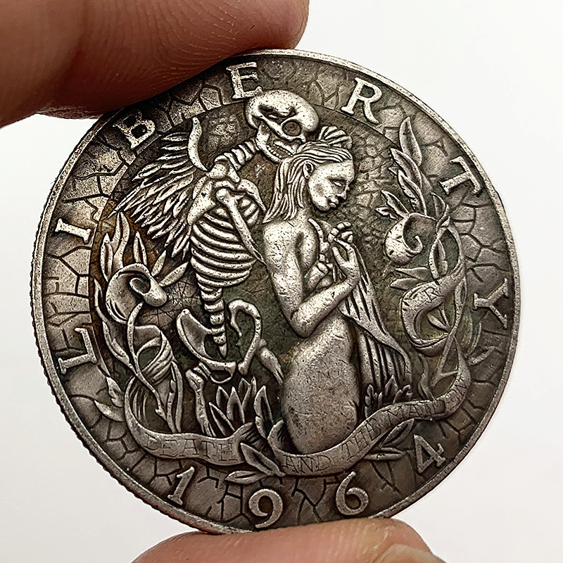 American skull relief antique old copper and silver commemorative coins collection of love copper coins craft 30mm coin medals