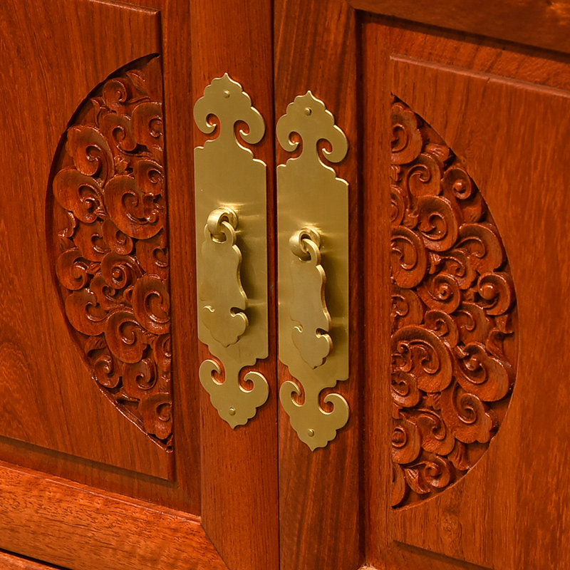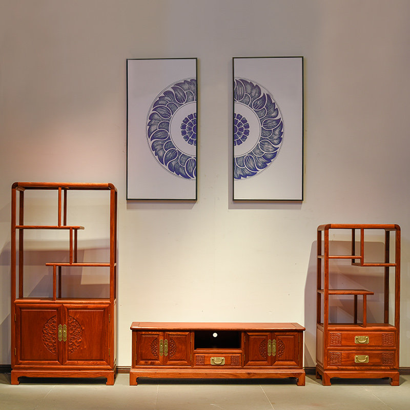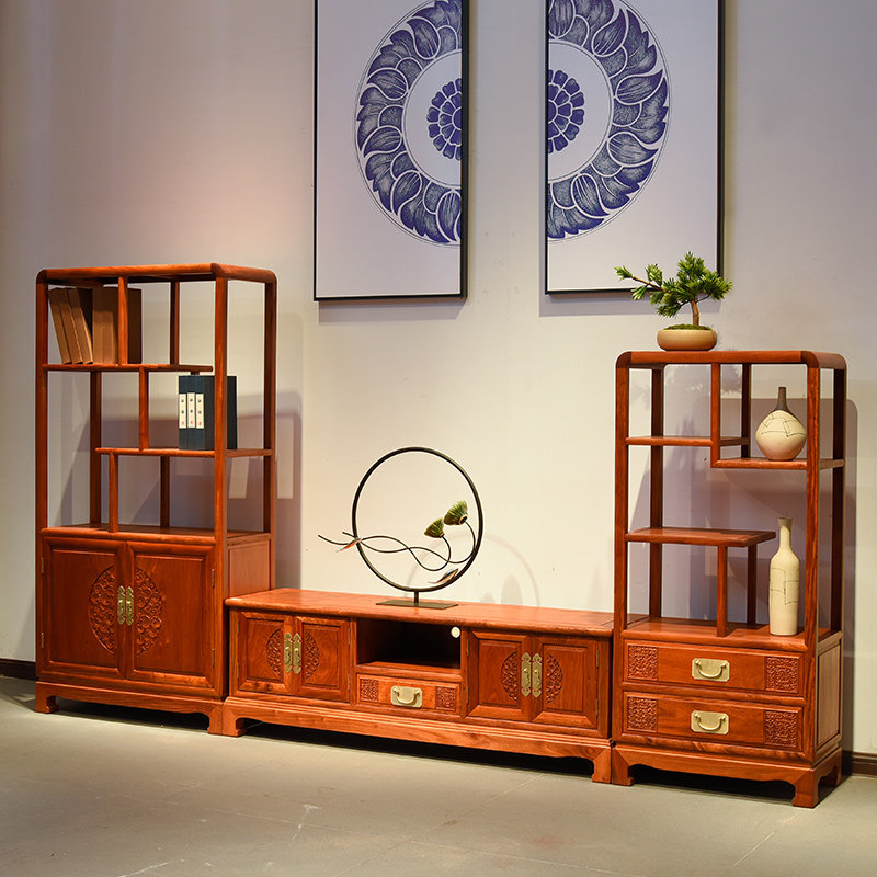 Solid wood TV cabinet combination of fruit sandalwood living room furniture Myanmar Hua pear wood TV cabinet New Chinese cabinet