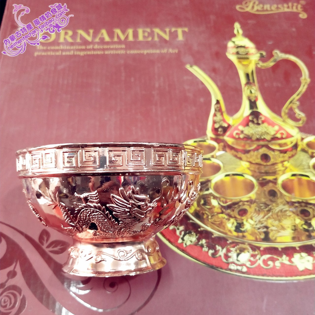 Inner Mongolia featured handicraft Mongolian wine bowl large number pure copper solid with dragon upscale wine bowl 11 5CM