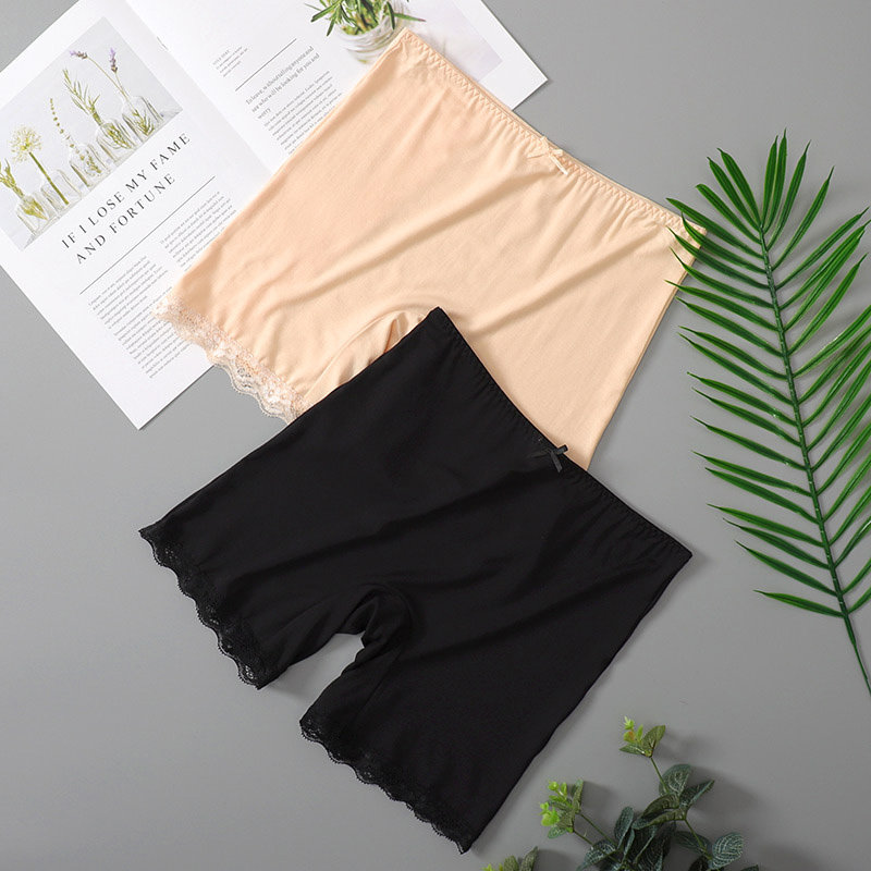 Di Anfen safety underwear underwear women's underwear mid-waist boxer solid color lace bamboo fiber breathable 2 packs