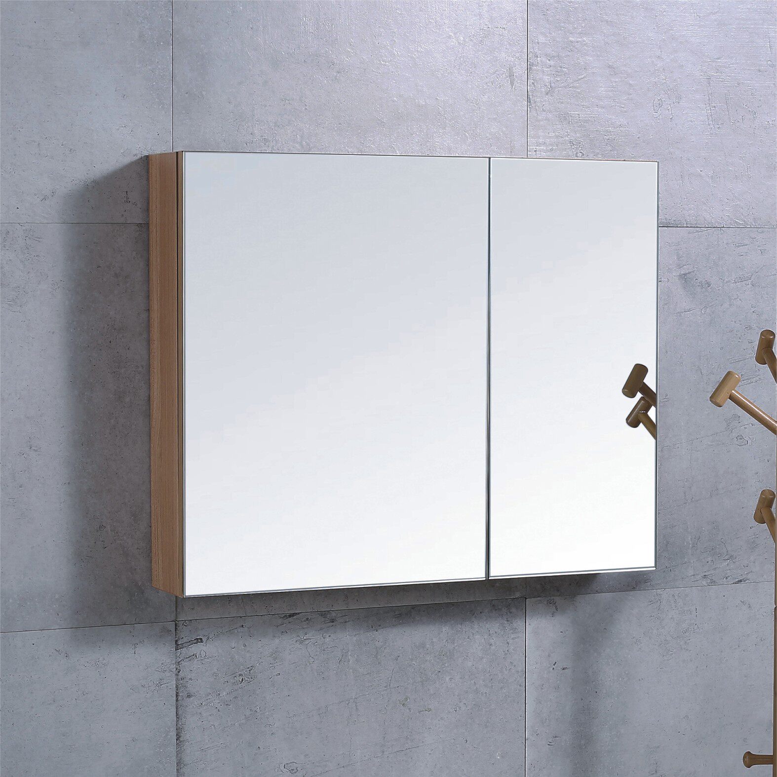Wall-mounted Mirror Solid Wood No Lacquered Mirror Cabinet Bathroom Makeup Room Mirror Waterproof Mirror Cabinet cabinet with lamp Custom G820