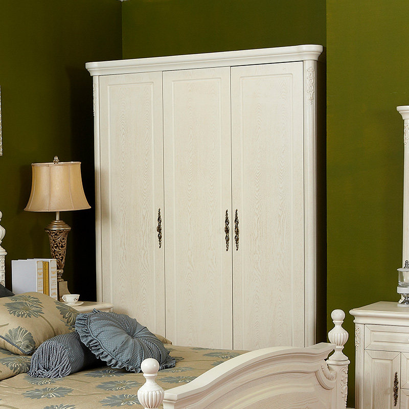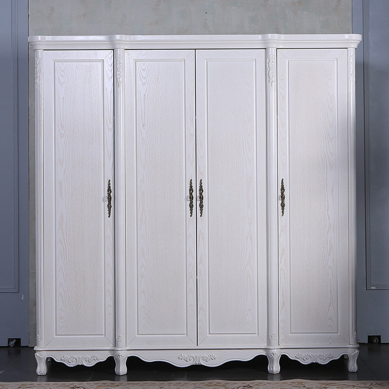 European-style furniture solid wood wardrobe antique American-style wardrobe white four-door overall storage wardrobe carved pastoral simplicity