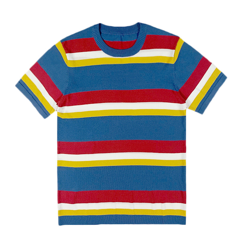 BROTHER summer homemade men's candy line striped ice silk short sleeve Korean sunshine boys knitted shirt tide